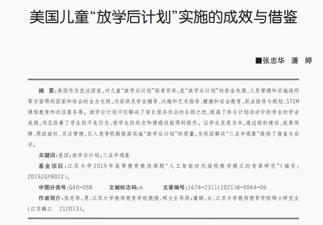 张忠华,潘 婷. 美国儿童“放学后计划”实施的成效与借鉴
