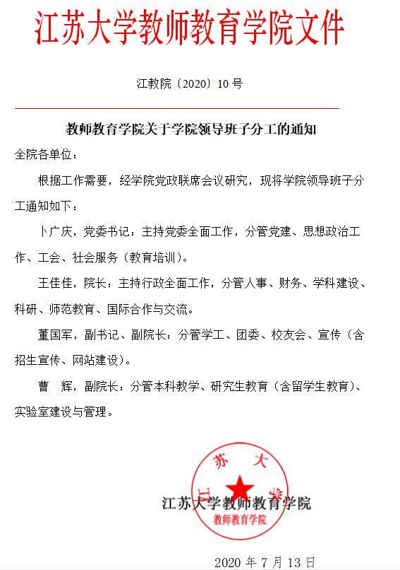 永利23411集团关于学院领导班子分工的通知