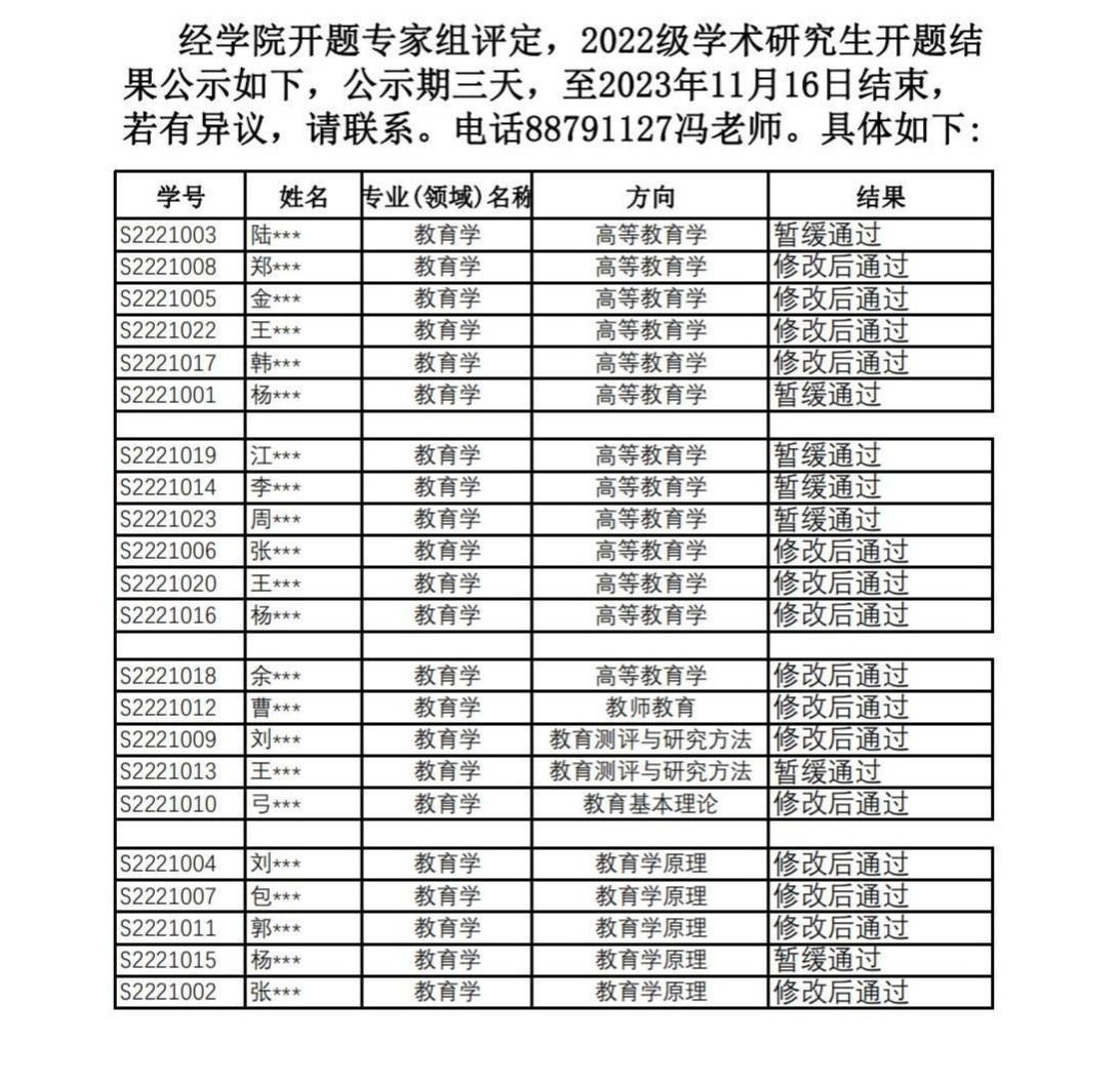 2022级学术硕士开题结果公示