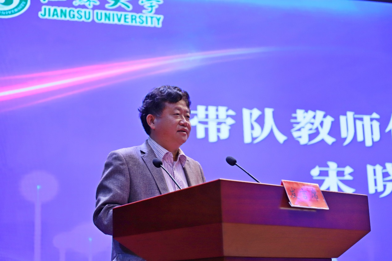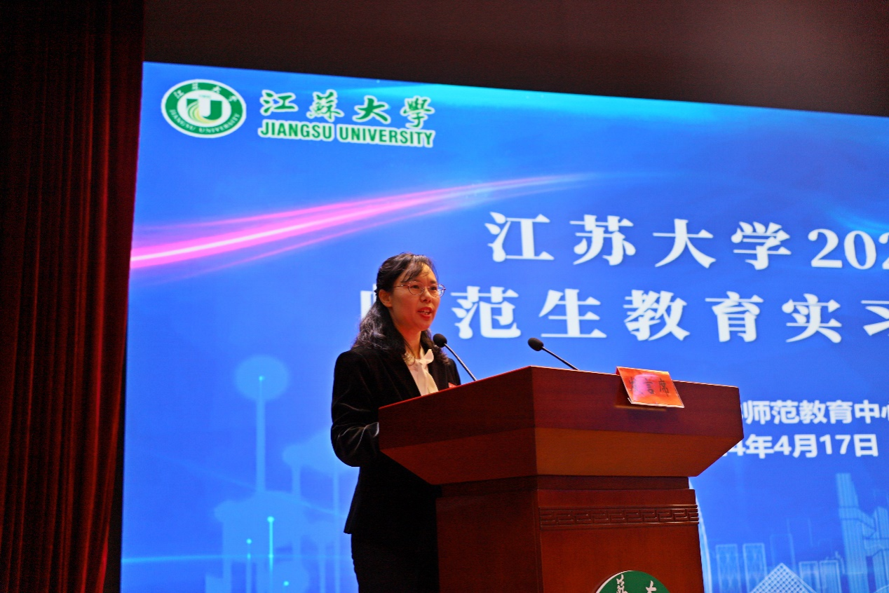 数学科学学院宋晓平作为带队教师代表发言。宋老师在江大工作22年,带队指导实习生22次。宋老师勉励实习生要热爱教育,热爱学生,做好“育人工程”。学然后知不足,教然后知困,唯愿返躬而自省,见贤而思齐,通过实习,在教学中不断深耕,将自己的课程“经营好”。