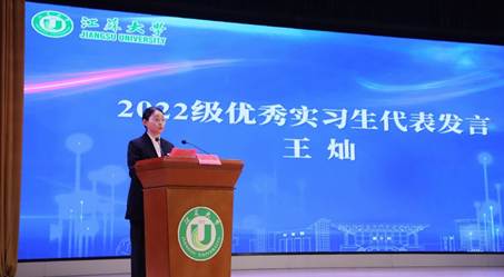 镇江市外国语学校西津渡校区副校长杨茸茸作为实习学校代表发言。她以校友身份寄语即将实习的学弟学妹,介绍了本校“双导师制”等安排,助力实习生夯实职业基础。