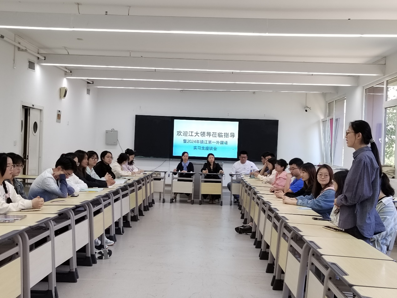 镇江市外国语学校西津渡校区副校长张雪琴、教务主任肖剑、信息处主任吴艳和中学教师代表、全体实习生与康翠一行开展座谈。双方就师范生联合培养、师范生教学基本功锻炼和中学人才招聘等方面进行交流。座谈后,学院指导教师邓晓燕、庞伟奇、黄湛与所指导的实习生进行单独交流。